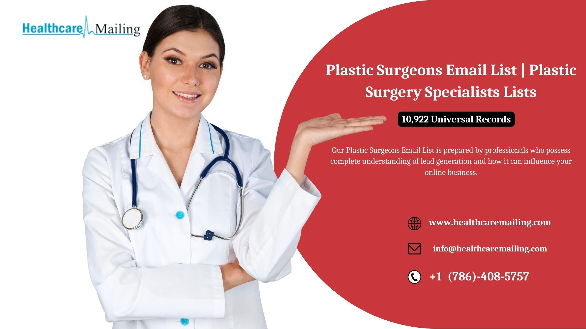 Stay ahead of the curve and get accurate contacts before your campaign rollout. Purchase our world-class Plastic surgeon mailing list and increase your engagement rates.