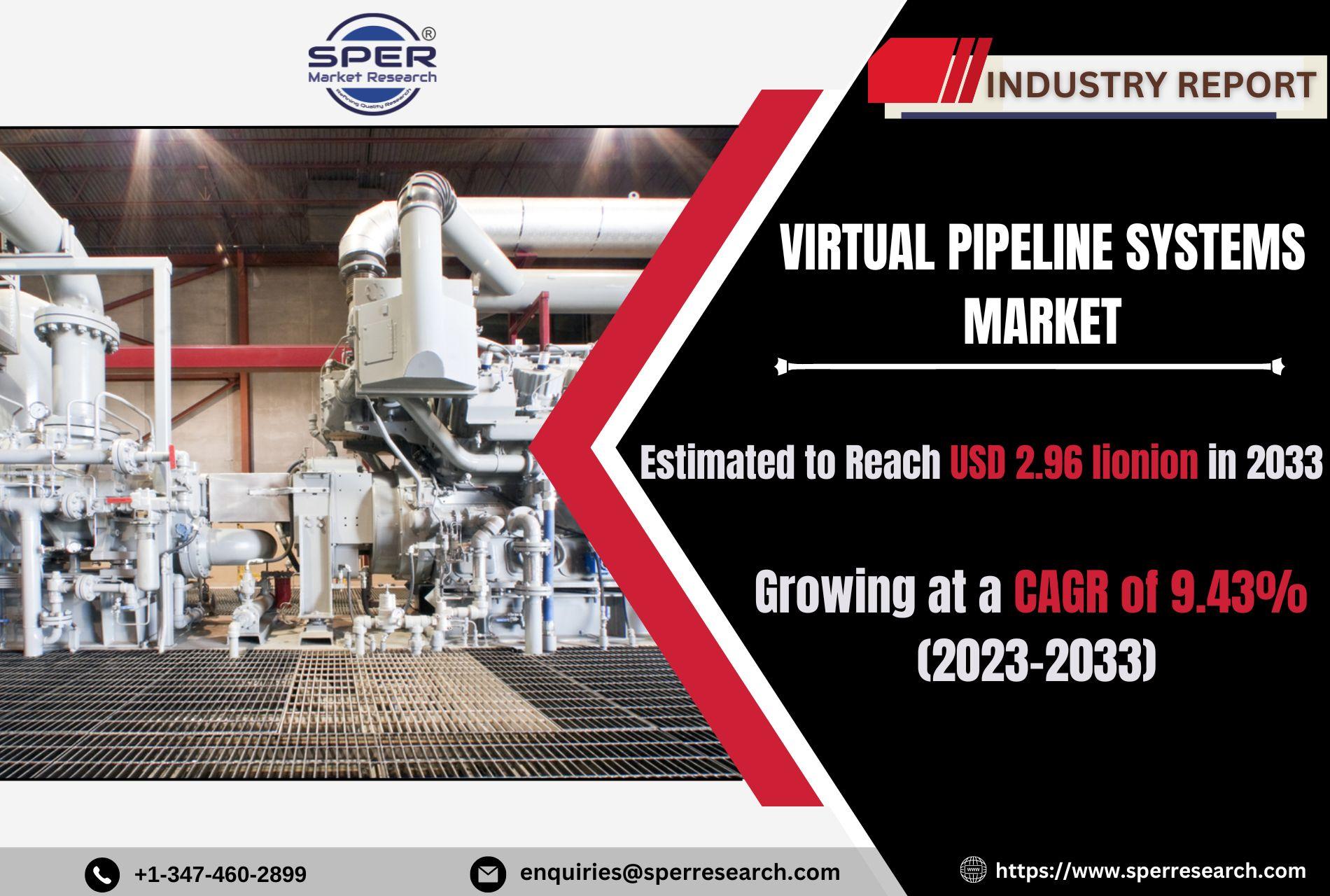 According to SPER market research, ‘Global Virtual Pipeline Systems Market Size- By Type, By Gas, By Pressure, By Application- Regional Outlook, Competitive Strategies and Segment Forecast to 2033’state that the Global Virtual Pipeline Systems Market is predicted to reach USD 2.96 billion by 2033 with a CAGR of 9.43%.